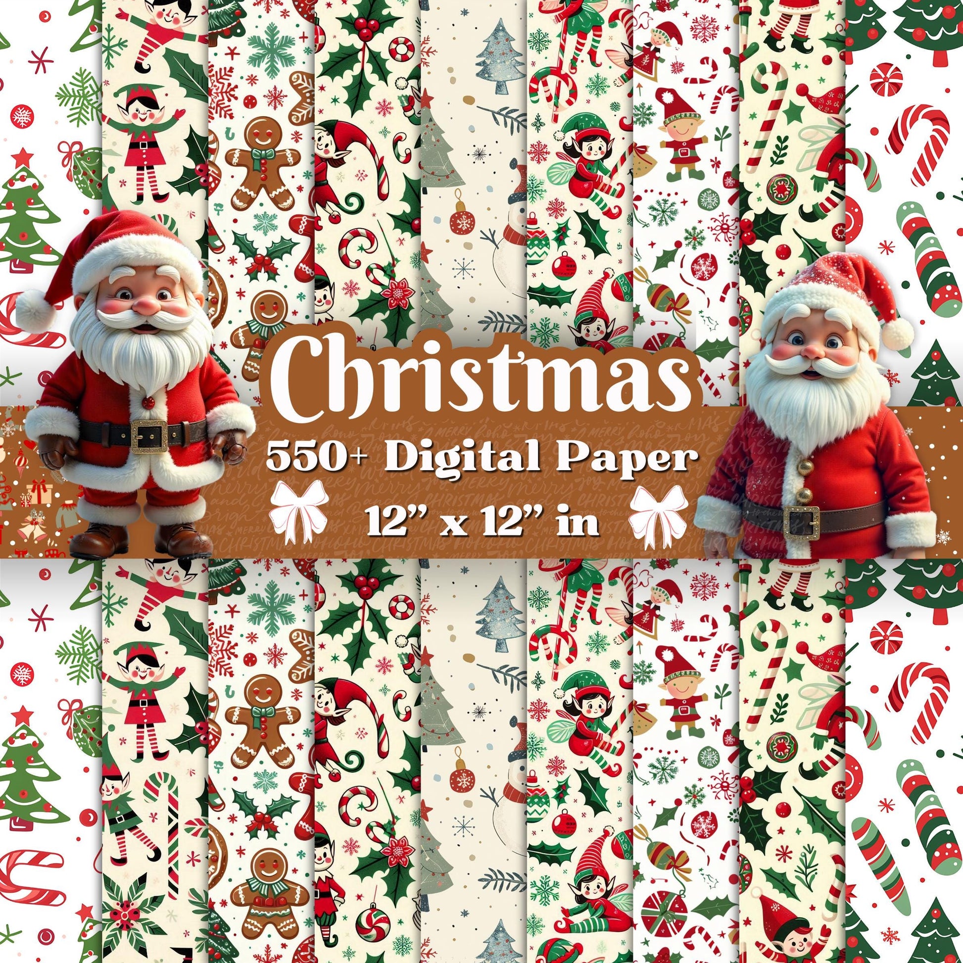 550+ Christmas Digital Paper Bundle - 12x12 Festive Designs. Elves, Candy Canes, Holiday Trees, Perfect for Crafts, Scrapbooking & DIY