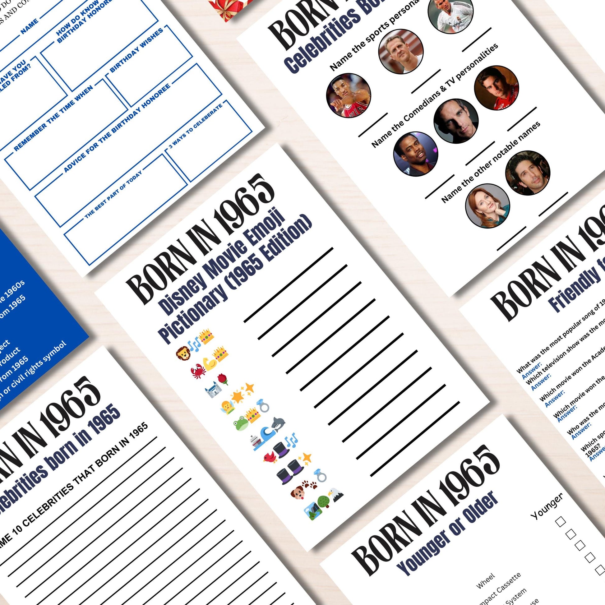 60th Birthday Games Bundle | Born in 1965 Party Games | Fun Printable Activities for Adults & Family | 60th Celebration Trivia & Icebreakers