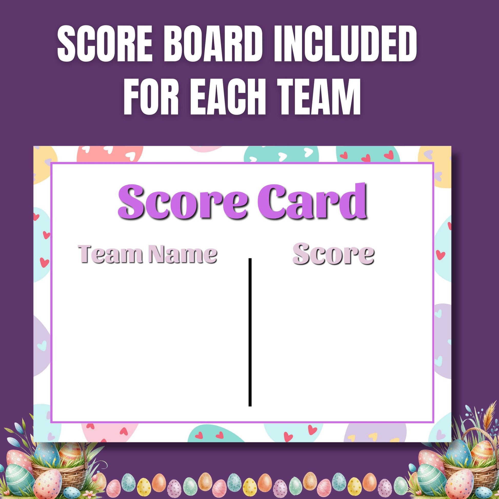 - Keep track of each team's progress with an easy-to-use scoreboard.