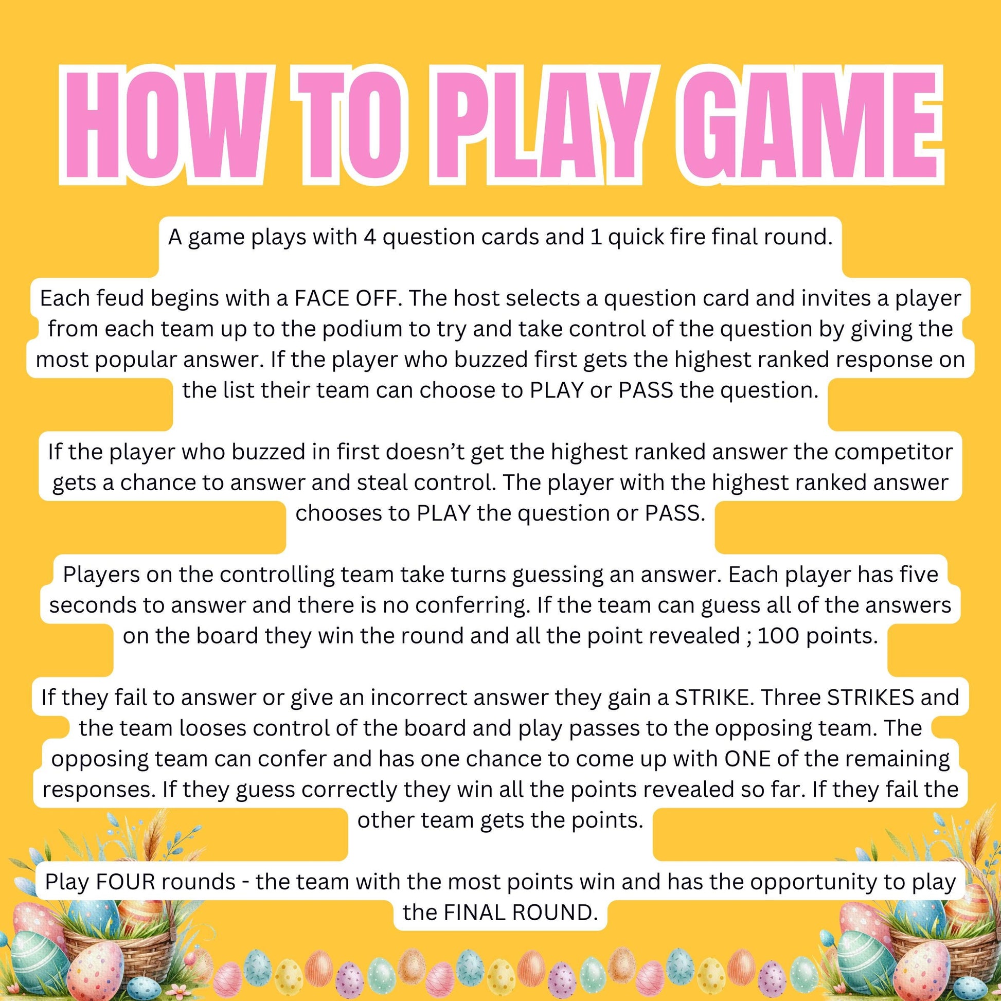 Easter Family Feud Game | Fun Easter Trivia Night | Printable Friendly Feud | Easter Party Game for Kids, Adults, Easter Game Night Activity