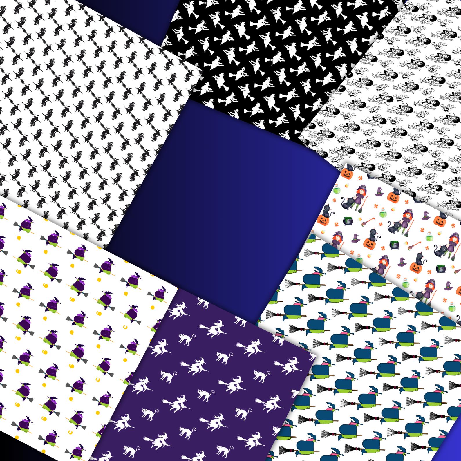Halloween Witch Digital Paper Bundle – 150+ Seamless 12x12 Patterns, Bats/Brooms/Cauldron/Pumpkin Backgrounds for Scrapbooking & Sublimation
