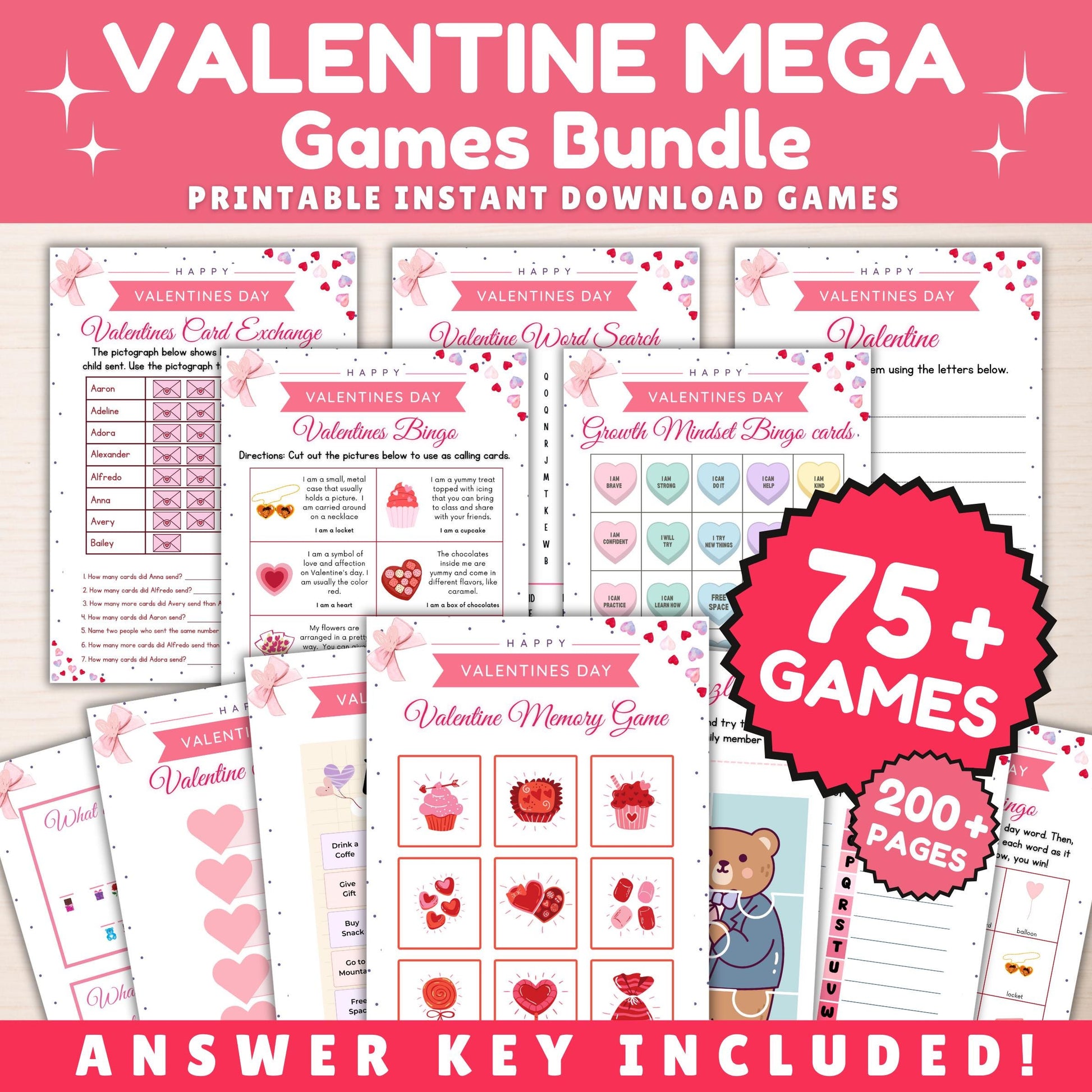 **💘 75+ Valentine’s Day Games Bundle | 200+ Pages of Fun for Kids & Adults | Printable Party Games & Activities | A4 & US Letter Sizes**